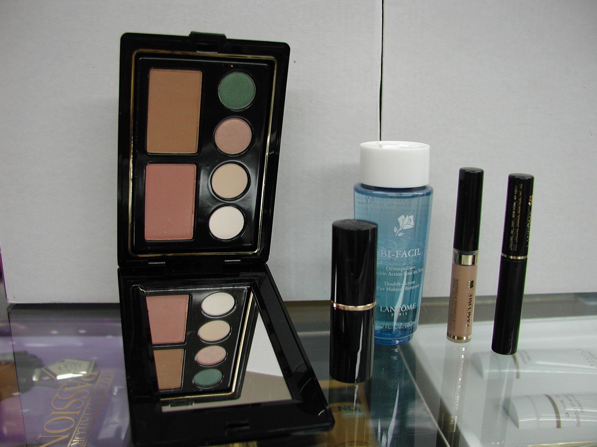 colors, blushes, eye shades, toners, cleansers, makeup removers, applicators